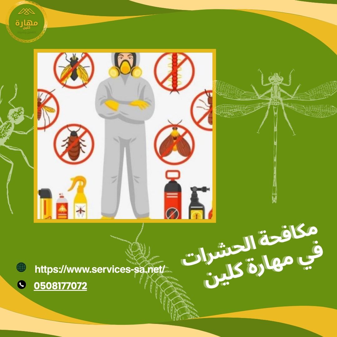 تقدّم شركة مهارة كلين بالرياض حلولًا متكاملة وفعّالة في مكافحة الحشرات بالرياض، باستخدام مبيدات آمنة ومرخّصة من الجهات المختصة، لضمان القضاء التام على جميع أنواع الحشرات مثل الصراصير، النمل الأبيض، البق، الذباب، والناموس. نحرص في مهارة كلين على استخدام أحدث تقنيات الرش والتعقيم لضمان نتائج سريعة ومستدامة، مع خطط وقائية تمنع عودة الحشرات مجددًا. يتم تنفيذ الخدمة بواسطة فريق متخصص ومدرّب على أعلى مستوى لتطبيق المبيدات بطريقة آمنة تحافظ على سلامة أسرتك وصحة أطفالك. نوفّر خدماتنا بأسعار تنافسية مع عروض وخصومات خاصة لعملائنا في مختلف أحياء الرياض، بما في ذلك شمال وشرق المدينة. ومع التزامنا بالمواعيد والدقة في الأداء، نضمن لك بيئة نظيفة وخالية تمامًا من الحشرات.